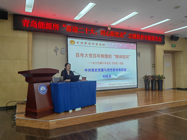 9月16日上午,青島能源所組織召開 “喜迎二十大,同心跟黨走”主題教育專題報告會。會議邀請到中共青島市委黨校劉桂英教授做《百年大黨百年輝煌的精神密碼》的報告,研究所民主黨派成員、無黨派人士、黨外知識分子40余人參加了報告會。報告會由黨委辦公室主任陳紅娟主持。