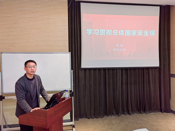 隨后,徐巖作了題為“學(xué)習(xí)貫徹總體國(guó)家安全觀”主題報(bào)告。他帶領(lǐng)與會(huì)同志共同學(xué)習(xí)了中國(guó)人民公安大學(xué)劉穎教授有關(guān)國(guó)家總體安全觀報(bào)告的主要內(nèi)容,介紹了國(guó)家總體安全觀的演進(jìn)、提出和內(nèi)涵,分析了當(dāng)前我國(guó)國(guó)家安全面臨的風(fēng)險(xiǎn)與挑戰(zhàn),以及構(gòu)建中國(guó)特色國(guó)家安全戰(zhàn)略的重點(diǎn)內(nèi)容。徐巖強(qiáng)調(diào),要全面踐行總體國(guó)家安全觀,胸懷“兩個(gè)大局”,統(tǒng)籌發(fā)展和安全,保障研究所各項(xiàng)事業(yè)平穩(wěn)推進(jìn)。