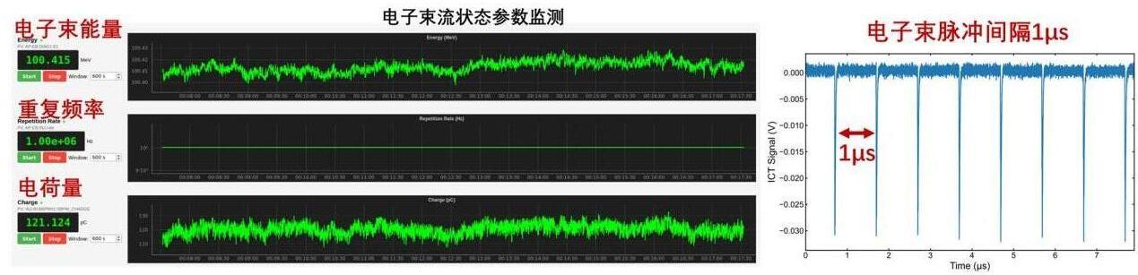 目前,該束流測試平臺已實現(xiàn)0.1毫安平均流強電子束流的穩(wěn)定加速運行。具體技術(shù)指標包括:電子束流能量大于1億電子伏特、單脈沖電荷量大于100皮庫、重復(fù)頻率為1百萬赫茲,整個平臺穩(wěn)定運行持續(xù)1小時,束流能量穩(wěn)定性優(yōu)于0.01%(RMS)。
